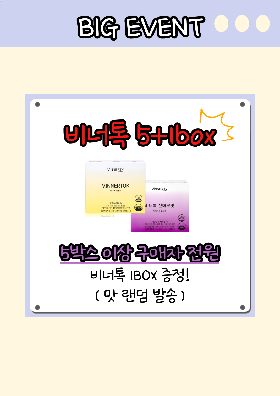 1) 선착순 3명 : 비너톡 랜덤 맛 1박스 증정